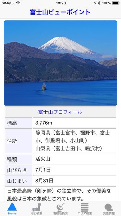 App Storeより引用標高3,776m、日本最高峰の独立峰である富士山。