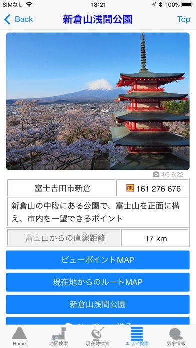 ※位置情報サービス(GPS)がオフの場合、現在地を「富士山」として扱います。