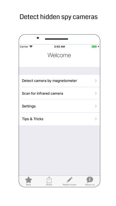 How to use - Move top left corner of your iPhone very close to the suspicious objects. It could be screw, flowerpot, shower head or anything that you find suspicious. If app beeps when brought closer to the object and stop beeping when moved away, further investigate for camera lens.