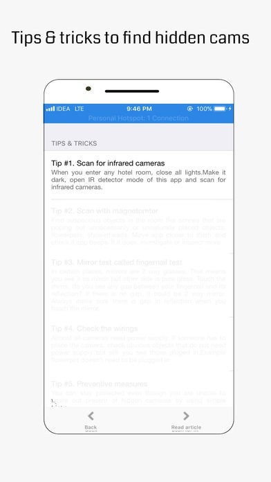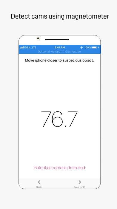 or even trying cloths in changing rooms, scan for pinhole cameras as well as infrared cameras with this app.