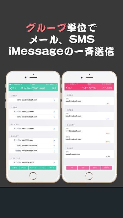 送信するたびに連絡先からメンバーを選ぶ手間なく、あらかじめ振り分けてあるグループを選んで送るだけでメッセージを一斉送信できるので、必要なメンバーにすぐに送信できます。