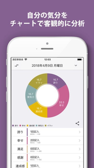 気分の変化を振り返るのに役立つ!ログのチャート分析機能を搭載