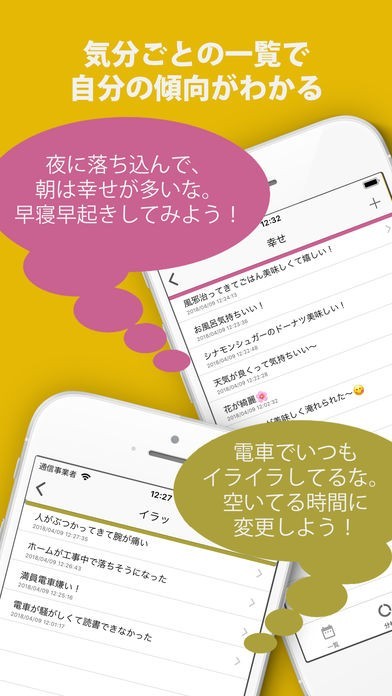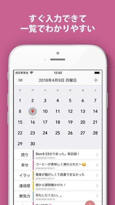 日常の出来事をその時の気分と共に記録することで、後から振り返って自分を客観的に確認できるアプリ