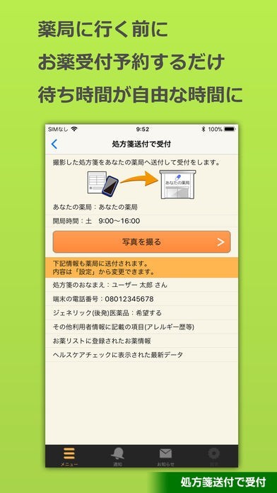 カメラで写した処方箋を薬局へ送信すると、お薬ができたらアプリで呼び出してくれる