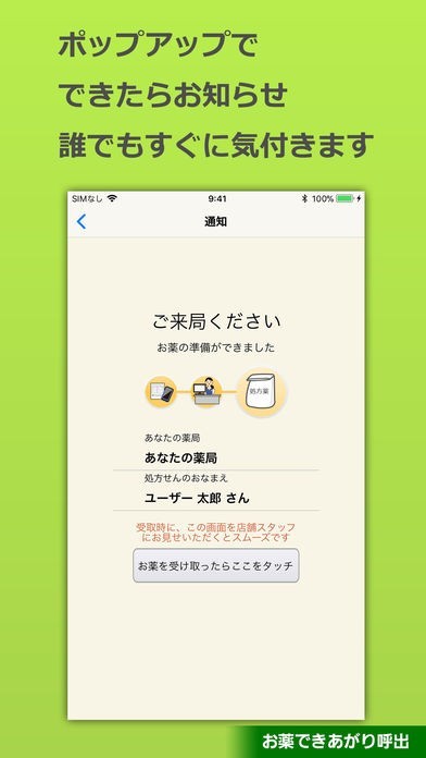 処方箋の画像を薬局へ送り、できたらアプリで呼び出し可能!