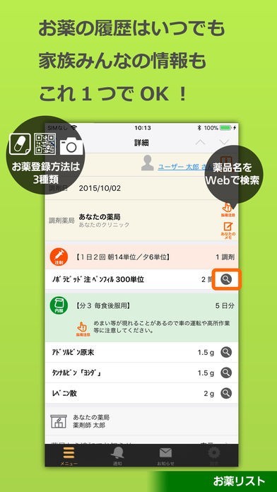 病気持ちにはありがたいアプリ。沢山の種類の薬を一括して管理できます。