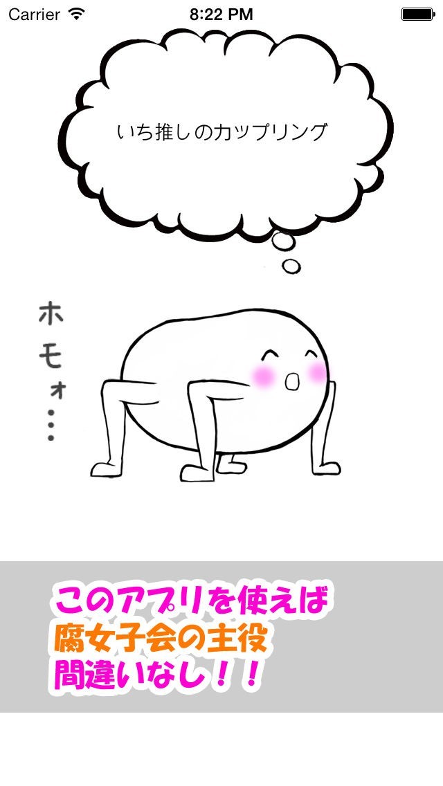 ホモォルーレットは一般的な女性向けでなく、腐女子の皆さんの為に開発されたプログラムです。腐女子の人々が続々と集まって来る為、内緒の会合である「腐女子会」の世界をじっくり楽しめます。このアプリには、そんな腐女子会のメンバーを力強く支援するコンセプトがあります。サービスを利用する時には、始めに「スタートォ…」を押します。タッチする事でルーレットが動き出す為、自らが気になる部分で「ストップゥ…」をクリックします。以降にはホモォルーレットがこの会合に相応しいお題を作ってくれます。色んなタイトルが設けられているので、腐女子の人達との絆を効率的に築けます。