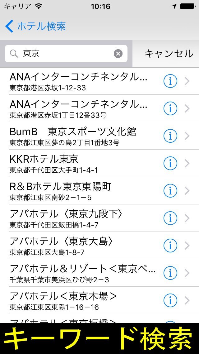 キーワード検索に対応!客室数や駐車場の台数を細かく確認していける