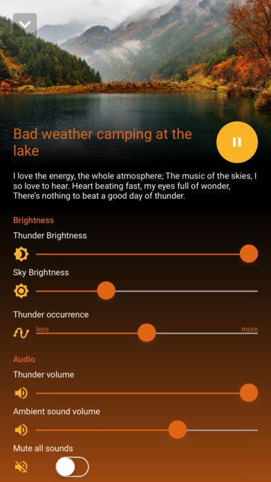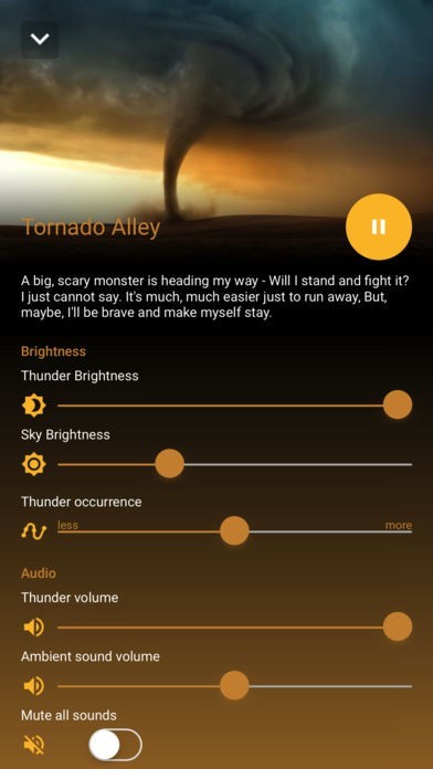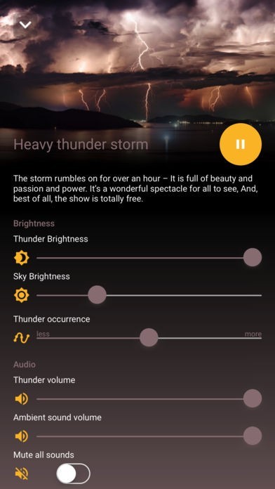 このアプリには雷が鳴っている空の明るさを自在に変えることができる機能が備わっています。空を暗くし夕方や夜を演出することもできますし、明るくして晴れ間の雷を再現することも可能です。