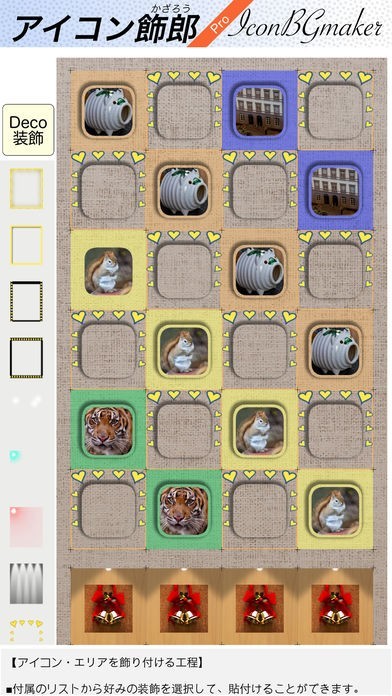 このアプリでは写真が表示されたアイコンを壁紙に張り付ける事ができます、張り付けたアイコンの周辺に影を張り付けたり、縮小や拡大も思いのままにカスタマイズすることが可能です。