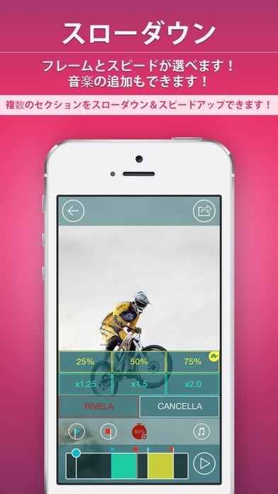 - バックカメラだけでなく、お持ちのデバイスのカメラすべてに使用できます。かっこいいスローモーション動画で自撮りも可能です!