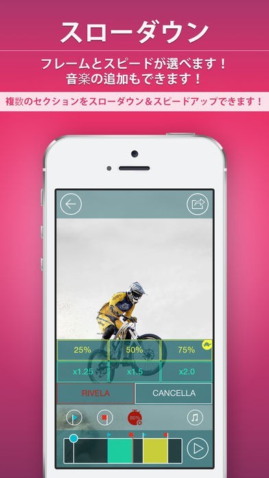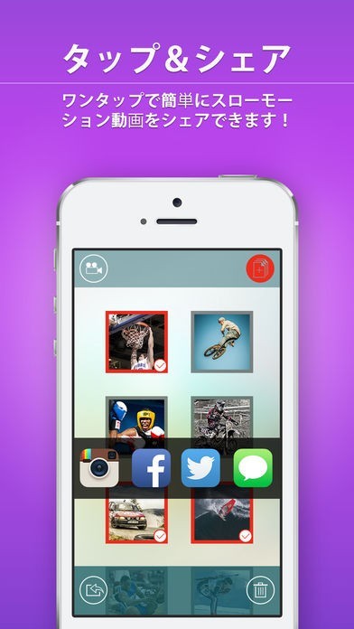 - カメラロールに保存したり、お好きなSNSサイトでシェアできます。本アプリならスローモーション動画もシェアできます!