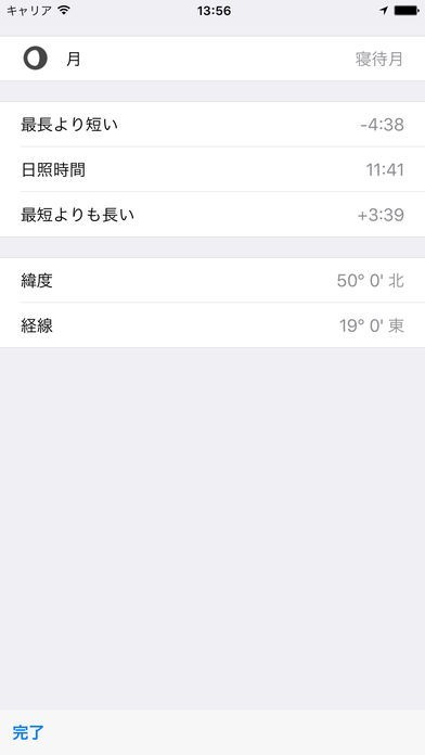 月の満ち欠けや、日の出日の入りの時刻、そして過去の同じ日時に起こった事象などをウィジェットに表示することが可能です。本アプリを使用して入手することのできる情報です。