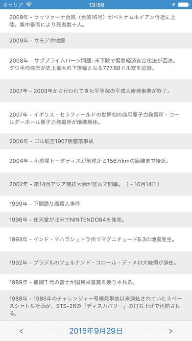 過去に起こった出来事は現代にも再び起こる可能性があります。歴史的な出来事からちょっとしたニュースまで幅広く網羅しているため歴史好きにはたまらないアプリといえます。