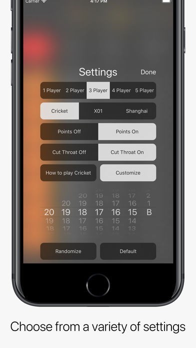 • Ability to customize what numbers to aim for instead of standard 15-20 and bull’s-eye