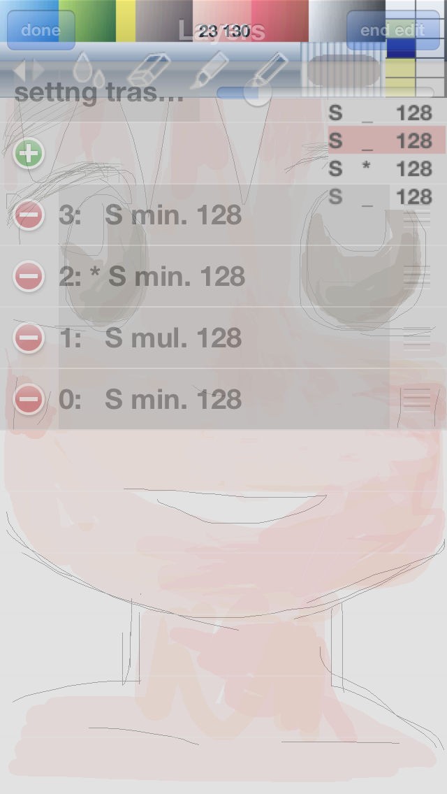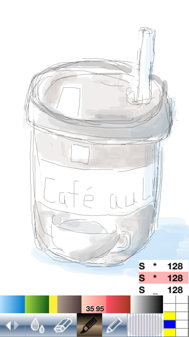 - ブラシ幅: 1〜50 (幅とかアンチエイリアスとか透明度とかもろもろ変更するには該当するボタンをダブルタップして下さい)