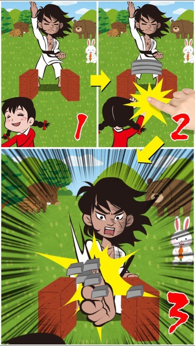 「空手チョッパー拳」は熱いキャラクターのグラフィックが目を引くリズムアクションゲームです。ルールは次々に目の前に出されるアイテムを空手チョップで破壊していくというものです。瓦なら空手チョップで対応できますが瓦以外のアイテムが並べられた時にはちょっと注意が必要です!叩くと危ないアイテムをよけることがこのゲームでスコアを伸ばすためのコツだからです。慣れてくると瞬時に判断することができるようになりますが、初めは少し時間がかかってしまったとしてもミスタッチを防ぐために丁寧にプレイするのがよいでしょう。短時間でプレイすることができるため、ちょっとした暇な時間を彩ってくれるアプリです。