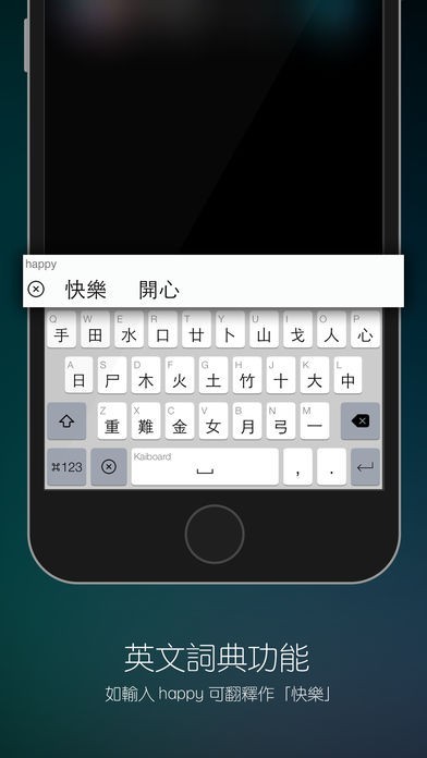 App Storeより引用Kaiboard 是一個混合了多種中文輸入法和英文的鍵盤,不需切換輸入法便可直接輸入中英文