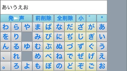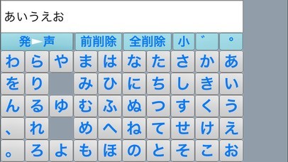 発声することが困難な方の代わりに言葉を話してくれる会話サポートアプリ「かなトークMini」。 自由に言葉を発せなくともひらがなの文字パッドで入力するだけで、円滑にコミュニケーションを図れるよう作られています。 画面にあいうえお順で並んだひらがなをタップするだけで入力でき、発声ボタンをタップすると入力された文章を読み上げてくれるといった内容で、代わりに発声する事だけを目的に作られたシンプルなサポートアプリになっています。この他、多機能を供えた上位版(有料)もあります。