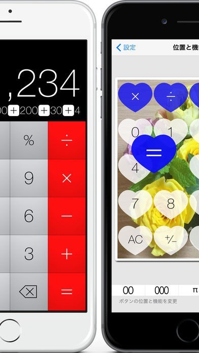 計算画面には背景色や色紙を設定することができます。好きな写真や色を選択して、自分好みのデザインに仕上げられます。自分が撮った写真を使って、楽しく電卓を使えるようになります。