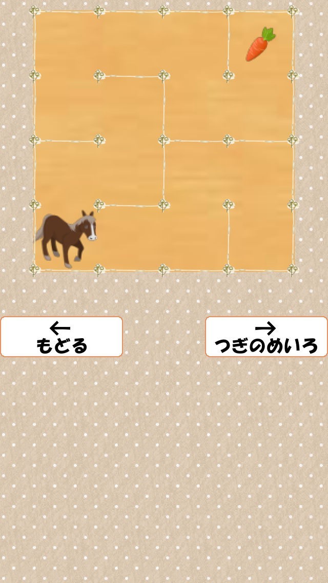 キッズ迷路は遊ぶたびに自動生成される迷路を、犬や猫、馬といった動物たちを指で操作してエサがある場所へ連れて行きます。かんたん、ふつう、、むずかしいの3つのステージが存在し、設定画面でむずかしいモードの難易度をさらに変更することができ、歯ごたえのある迷路を親子で楽しめるアプリです。各ステージのクリア回数をリセットしたいときは、設定画面にて行うことができます。迷路がどうしてもクリアできない場合は、画面上の「つぎのめいろにすすむ」をタップすることで、新しい迷路が自動生成されるお助け機能が便利です。操作する動物は、壁にぶつかった時にドラックすると動きが止まる場合があります。その時はタップし直すか、指の位置を壁にぶつかる前の位置に戻すことで対処することが可能です。