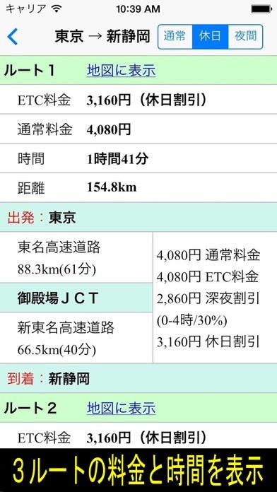 一般道と高速道路、どちらを利用するべきか迷った時にも便利!旅行計画を作る際にも活用できます!