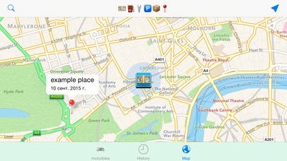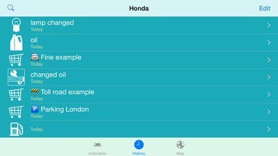 App Storeより引用これは、あなたのバイクのためのシンプルで便利なアプリケーションです。あなたは、コスト、日付と地理座標を含む任意のアクションを保存することができます。そして、あなたは歴史の中で、または地図上に情報を表示することができます。