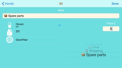 - スペア:あなたはオートスペアの独自のリストを作成して、ショッピングのためにそれを使用することができます。購入したスペアの場所、時間とコストがマークされます。