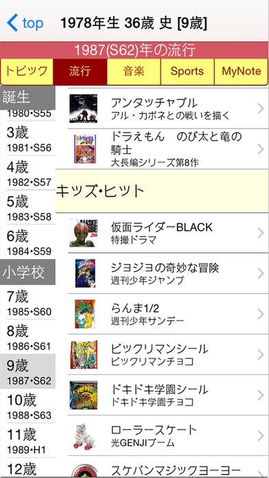 「思い出ノート」で年毎の流行りを閲覧できる!
