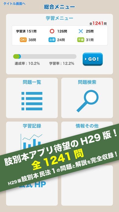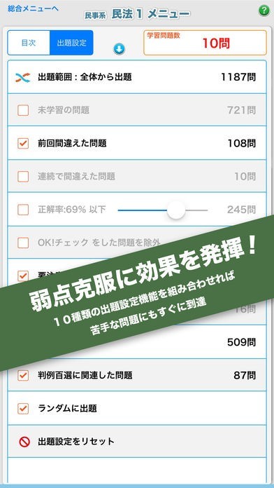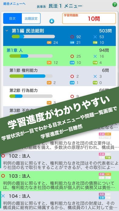 司法試験に対応した問題と解説を収録したアプリ