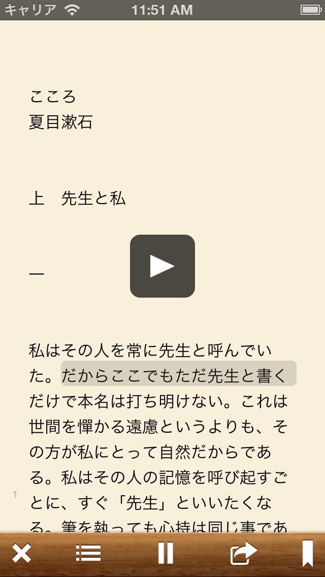 App Storeより引用青空文庫の作品を自動音声読み上げで聞けるアプリです。