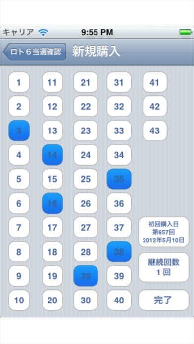 購入ページに移動します。そこで6個の番号を選び購入日と継続回数を選択します。購入日は次回から過去9回までの中で選択できます。継続回数は1から10回までと無制限が選択できます。