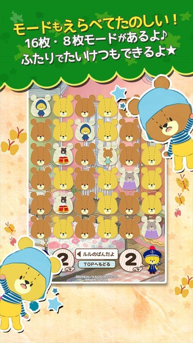 App Storeより引用がんばれ!ルルロロの神経衰弱ゲーム!
