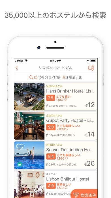 世界170か国、36000件以上ものホステルやホテルを検索・予約することができるアプリになっております。スピーク・ザ・ワールド機能が搭載されているので日本語にも翻訳でき見やすい作りになっています。現在地から近い宿泊施設を検索でき、マップで表示させることもできます。施設の写真や口コミも収録されているので、宿選びの際に役立ちます。