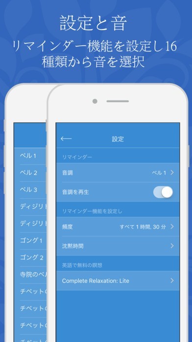 • 16種類のマインドフルネスに特化したデジタルHDサウンド