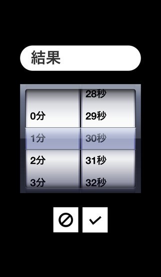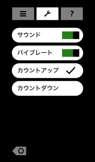 ○レンチボタンをタップすると、音とバイブレーションのon/offの設定、カウントアップとカウントダウンの切り替えができます。(バイブレーションはiPhoneのみ対応*)