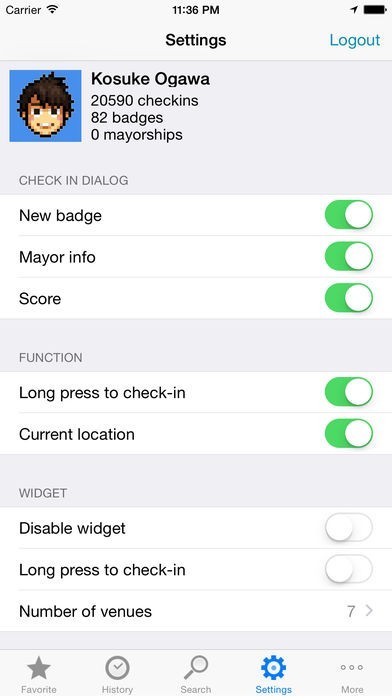 よく使うベニューはお気に入り登録をしておくのがオススメです。履歴や地図からのチェックインはもちろんのこと、ウィジェットやApple watchからも可能になっており便利です。