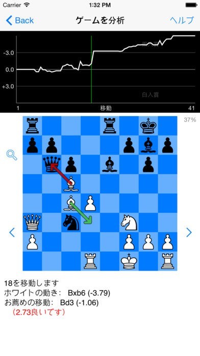 ポーンやナイトなどそれぞれの駒に得点が割り振られているためゲームの進行に応じてどちらのプレイヤーが駒の交換で得をしているのかがわかります。グラフで表示されるためわかりやすくなっています。