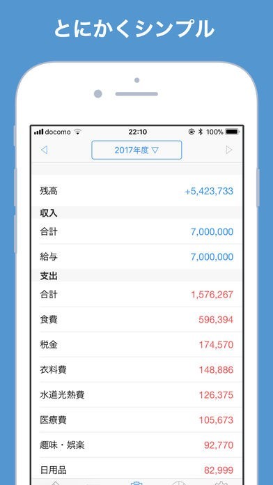 ユーザーレビューでも高評価な、シンプルで使いやすく、スムーズに入力ができる家計簿・おこづかいアプリです。 余計な機能を排除したシンプルな設計なので、簡単に使うことができて、使い方もすぐにマスターできます。登録する必要はなく、誰でも無料で使用することができます。データは、表計算ソフトなどに出力も可能で、データをバックアップすることもできるので、スマートフォンなどの機種変更をした時でもそのままのデータを使い続けることができます。