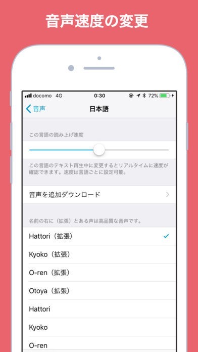 25ヶ国語対応、音声のスピードは調整可能だから語学学習におススメ