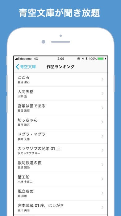 このアプリでは、たくさんの小説を無料で読むことができるサイト「青空文庫」から小説を取り込んで聴くことができるので、混んでいる電車で通勤している時でも手軽に小説に触れることができます。