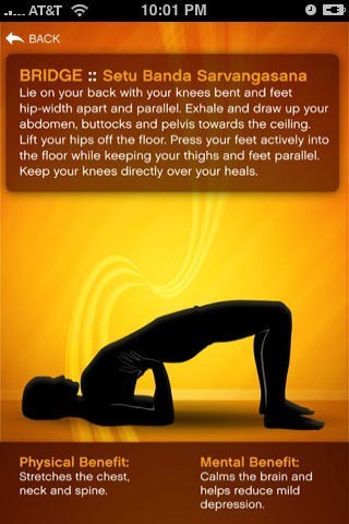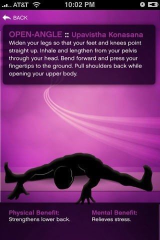 35種類以上の動きから一つを選択し、実況解説の音声に従ってヨガのポーズを行います。ポーズは画面にもわかりやすく表示され、瞑想を深めるためのBGMを3曲のなかから選ぶこともできます。