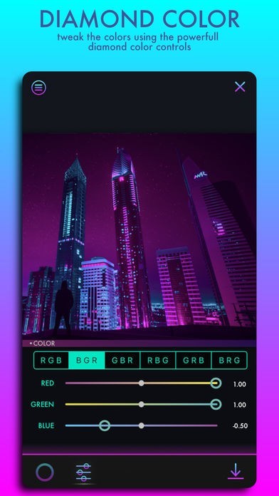 カラー以外にもコントラストやフェード、彩度などの画像編集としての項目があるのでネオンカラーで撮影した後に編集を加えていくことでより一層雰囲気の良い写真に仕上がるのでお勧めです。
