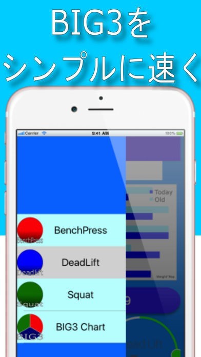このアプリはトレーニングにおいて主要な3種目と言われるBIG3(ベンチプレス、デッドリフト、スクワット)の記録に焦点を当てています。