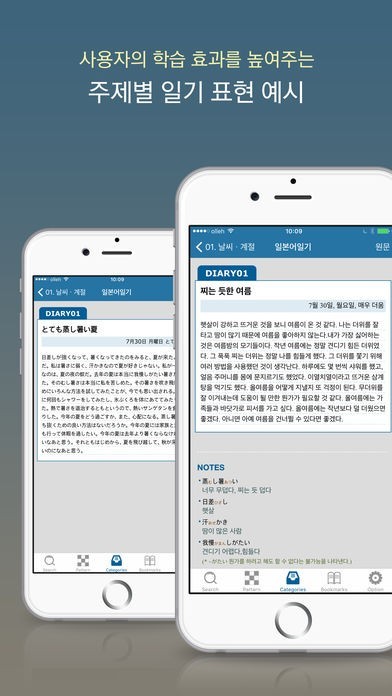 4. 상황별 3단계 Category 및 일본어일기 표현 지원.