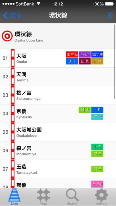 ・各路線は、駅名(日本語、英語)と乗り換えの表示
