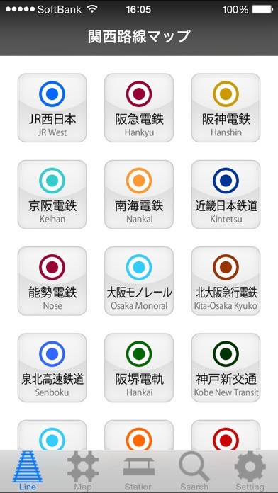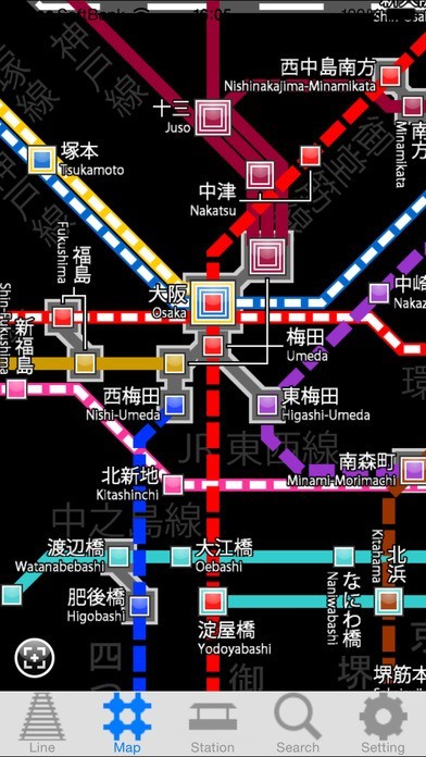 大坂や兵庫等の関西エリアの路線図を表示出来るようになっています。また快速や急行といった電車情報を細かく確認していけるのも利点です。駅名のキーワード検索にも対応しています。