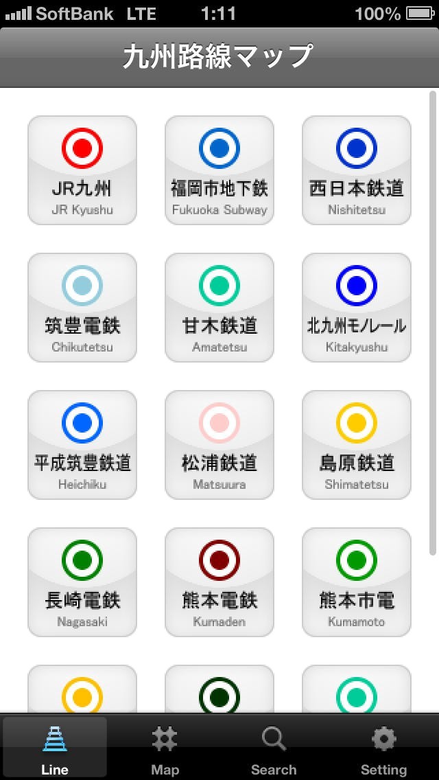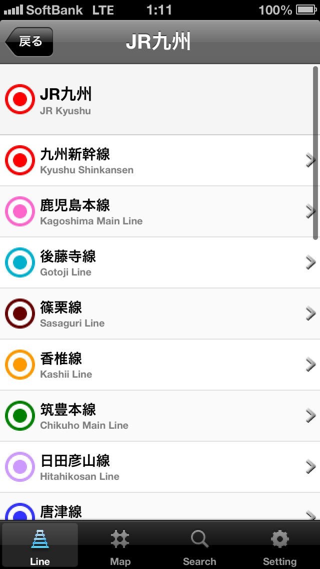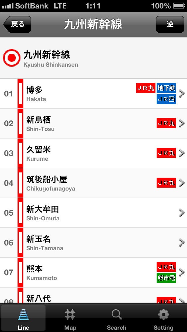 九州路線マップのスクリーンショット