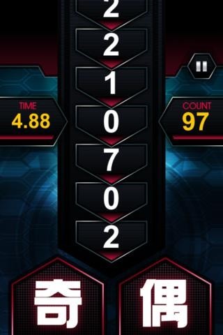 次々と現れる数字が偶数であるか奇数であるかを判断するスタイリッシュなゲームが「奇数か偶数か」です。操作は画面の下部に表示されている「奇」と「偶」のボタンをタップして行います。間違わずに数字を判断するためのポイントは一桁目の数字をチェックするということです。なぜなら、3桁の数字が登場したとしても数字の大きさに惑わされず一桁目の数字に着目することで偶数か奇数かを判断することができるからです。一回のプレイは2分から5分程度で済ますことができます。通勤時間など朝にプレイすれば暇をつぶすことができるだけではなく、朝から頭を活性化させることにもつながります。