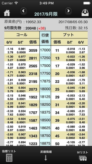 トップメニューからIVカーブ、オプション指標へと移ることがてき、コール・プットや行使価格の情報も簡単チェックできます。流れるように操作できストレスを感じずに投資戦略に集中できます。